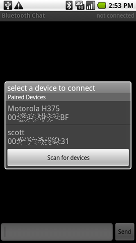 two-way text chat over Bluetooth. It demonstrates all the fundamental Bluetooth