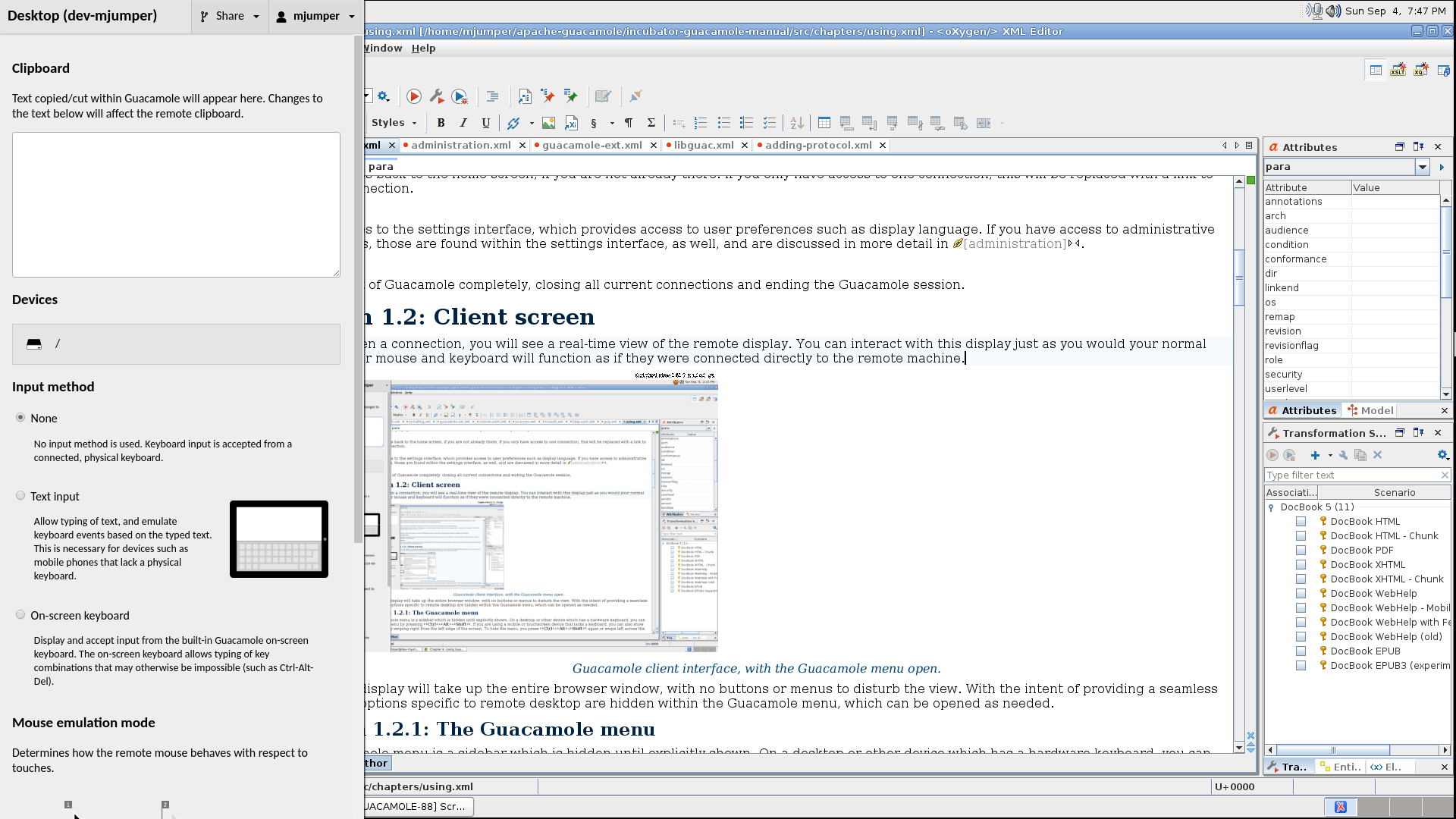 Guacamole provides multiple keyboard input methods and multiple mouse emulation modes. Many of these settings are specifically useful for touch devices, while others are aimed mainly at traditional desktop use. By default, Guacamole will use the keyboard and mouse modes most commonly preferred by users, but you can change these defaults if they do not fit your tastes or your current device.