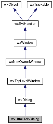 Inheritance diagram for wxHtmlHelpDialog:This class is used by wxHtmlHelpController to display help.