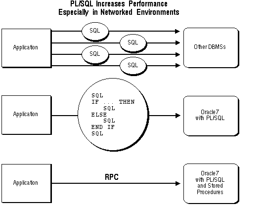 PL/SQL can also cooperate with Oracle application development tools such as Oracle Forms and Oracle Reports. By adding procedural processing power to these tools, PL/SQL boosts performance. Using PL/SQL, a tool can do any computation quickly and efficiently without calling on Oracle. This saves time and reduces network traffic. For more information, see Chapter 5, "Using Embedded PL/SQL" and the Oracle Database PL/SQL Language Reference.