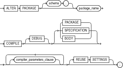 The ALTER PACKAGE statement explicitly recompiles a package specification, body, or both. Explicit recompilation eliminates the need for implicit runtime recompilation and prevents associated runtime compilation errors and performance overhead.