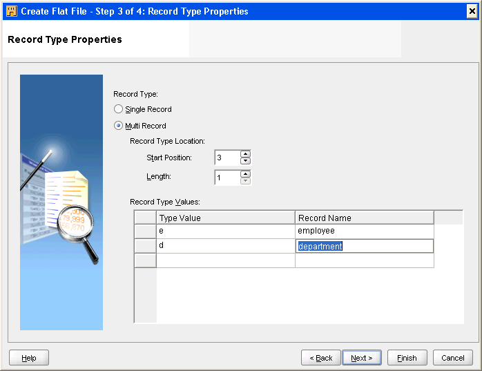 For files with complex record structures, the Flat File Sample Wizard may not be suitable for sampling the data. In such cases, you must create a flat file and define its structure accordingly. See "Using the Create Flat File Wizard" for creating and defining the structure of a flat file.