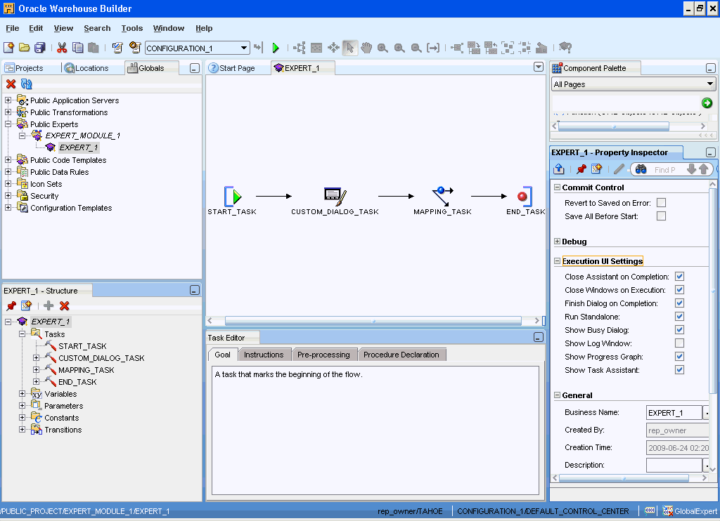 Experts are reusable, shareable, and can access all areas of Warehouse Builder including user interfaces and the OMB*Plus scripting language. Experts can also call Java programs.