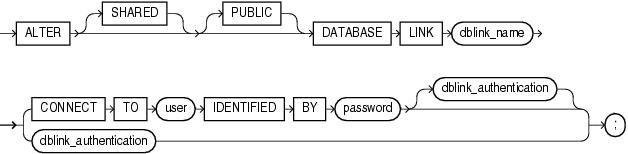 You cannot use this statement to change the password of a connection or authentication user. You must use the ALTER USER statement for this purpose, and then alter the database link with the ALTER DATABASE LINK statement.