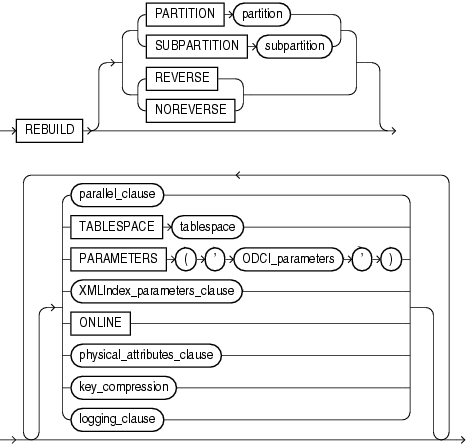 (deallocate_unused_clause ::=, allocate_extent_clause ::=, shrink_clause::=, parallel_clause ::=, physical_attributes_clause ::=, logging_clause::=, rebuild_clause ::=, alter_index_partitioning ::=)