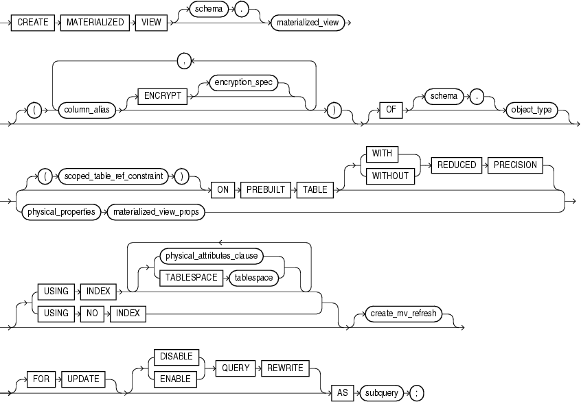 (physical_properties::=, scoped_table_ref_constraint ::=, materialized_view_props::=, physical_attributes_clause::=, create_mv_refresh::=, subquery::=)
