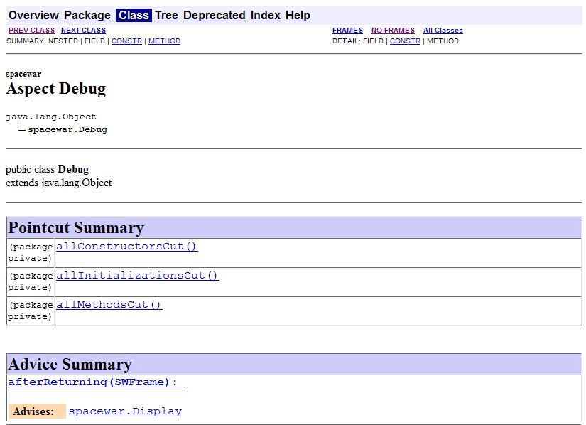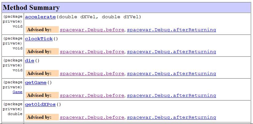 advised by relationships next to methods and advice. A future enhancement will show inter-type declarations
