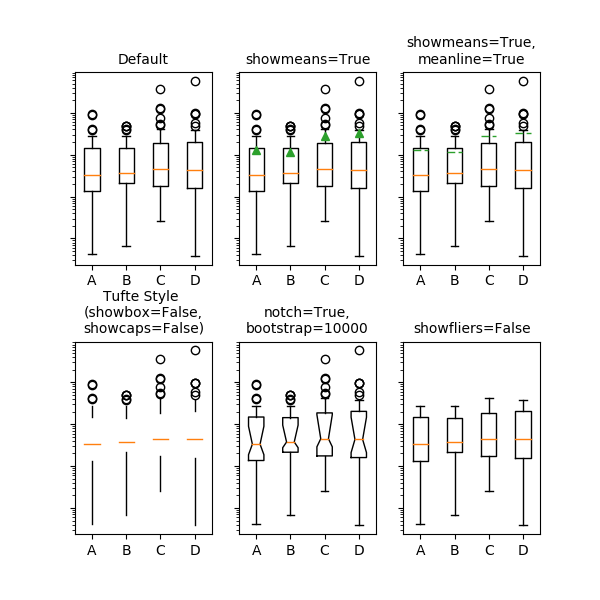 axes[1, 0].boxplot(data, meanprops=meanpointprops, meanline=False,
