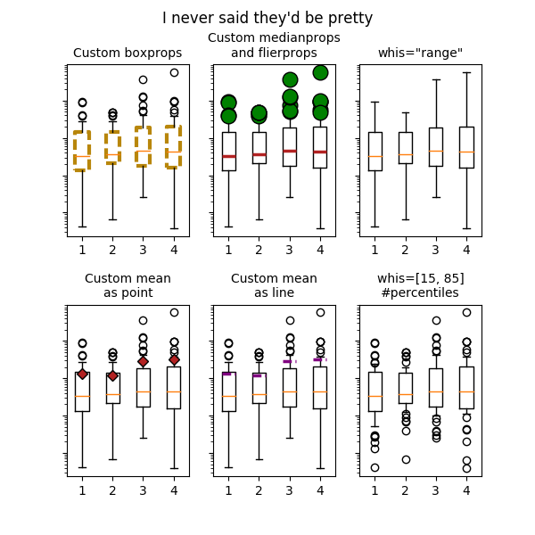 axes[0, 0].set_title('Custom boxprops', fontsize=fs)