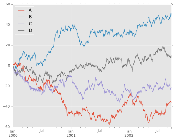 In [5]: df = pd.DataFrame(np.random.randn(1000, 4), index=ts.index, columns=list('ABCD'))