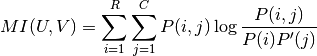 The Mutual Information is a measure of the similarity between two labels of the same data. Where