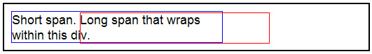 This example shows a 'long' sentence that wraps within a div with a blue border, and a red box that one might think should describe the boundaries of the span.