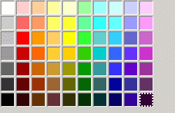 A palette of colors from which a user may select by clicking on one of the grid cells.