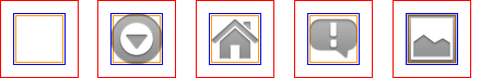 In order to indicate the recommended size for the icon, each example in Figure 1 includes three different guide rectangles: