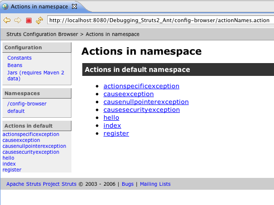 Clicking on the link for the configuration browser will cause the Struts 2 framework to return this page to your browser.