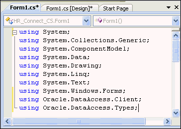 You can add Oracle namespace directives that allow you to indicate an assembly's namespaces within the module. To do this, add C# using statements or Visual Basic Imports statements, at or near the top of a code file.