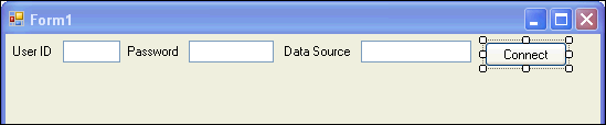 In the Form1 application, enter the User ID, Password, and Data Source.