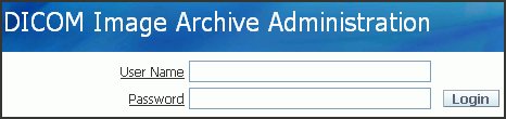 Before you can begin to work on any of the administrator tasks, you must log in to the DICOM Image Archive Administration interface.