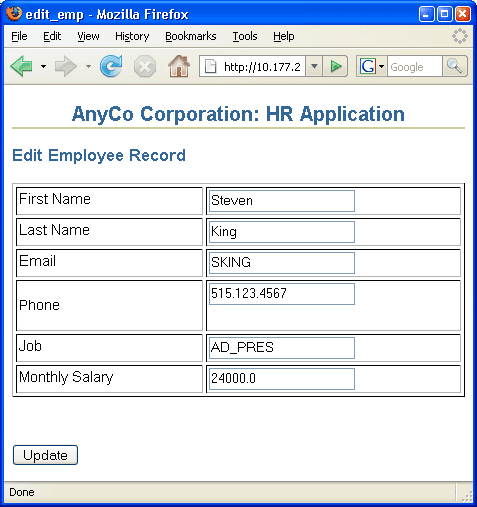 In this chapter, you will see how you can modify the sample application and add functionality that allows users to edit, update, and delete data in Oracle Database. This chapter includes the following sections: