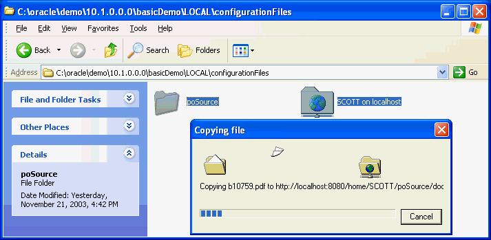 The query in Example 3-64 lists the contents of the folder identified by path /home/QUINE/PurchaseOrders/2002/Apr. This is effectively a directory listing of the folder.