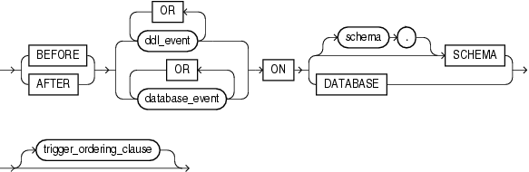 One or more types of DDL SQL statements that can cause the trigger to fire. You can create triggers for these events on DATABASE or SCHEMA unless otherwise noted. You can create BEFORE and AFTER triggers for these events. The database fires the trigger in the existing user transaction.