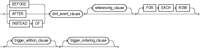 Creates the trigger as a row trigger. The database fires a row trigger for each row that is affected by the triggering statement and meets the optional trigger constraint defined in the WHEN condition.