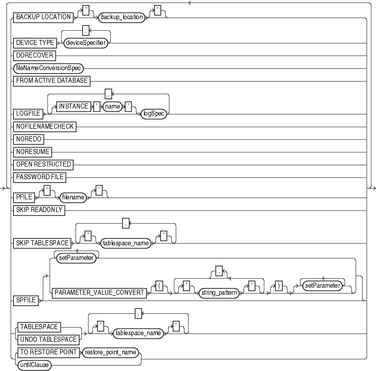 UNTIL TIME 'SYSDATE-1' # specifies incomplete recovery