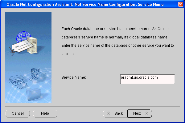 Provide the Global Database Name in the Service Name text box. (See "Install Oracle Database".)