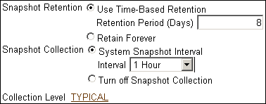 Oracle recommends that you adjust the AWR retention period to at least one month. You can also extend the period to one business cycle so you can compare data across time frames such as the close of the fiscal quarter. You can also create AWR baselines to retain snapshots indefinitely for important time periods.
