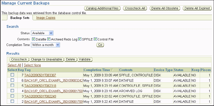 Oracle By Example (OBE) has a series on the Oracle Database 2 Day DBA guide. This OBE steps you through the tasks in this section, and includes annotated screenshots. To view the Backup and Recovery OBE, in your browser, enter the following URL: