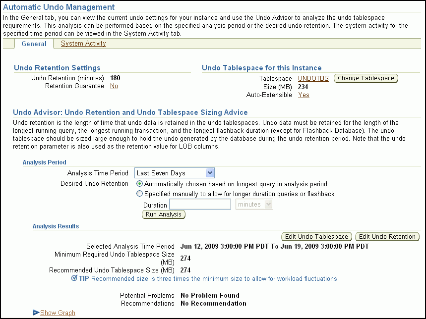 You can use the Automatic Undo Management page to view the following information about your undo configuration: