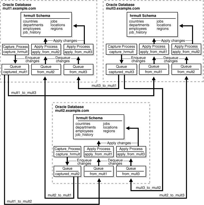 For more information about this configuration, see Oracle Streams Extended Examples.
