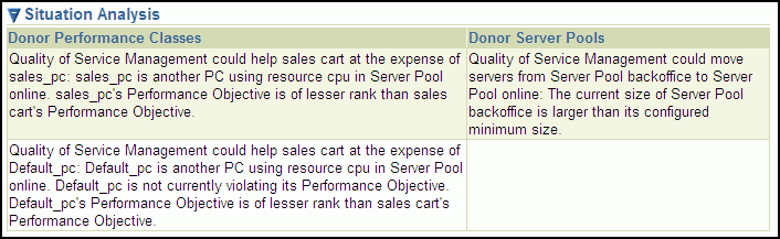 The Recommended Actions page also has a section called Situation Analysis. If you display the output in this section, then you can see a description the projected impact implementing the Recommendation will have on the Performance Classes and the server pool, as shown in the following screenshot.