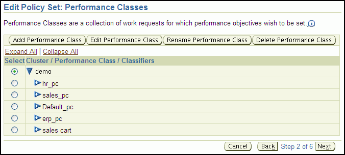When finished, click Next. The Policy Set Editor: Performance Classes page appears.
