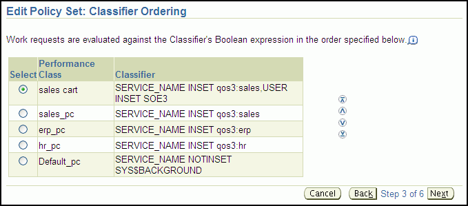 Proceed to the third page in the wizard, which is titled Edit Policy Set: Classifier Ordering.