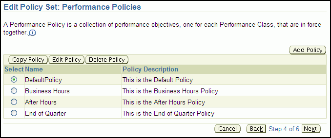 Proceed to the fourth page in the wizard, which is titled Edit Policy Set: Performance Policies.