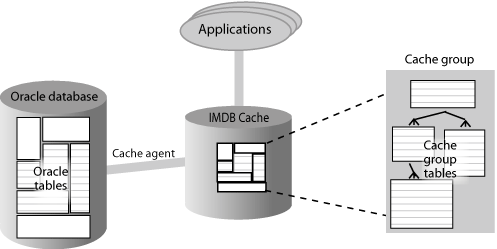 You can cache Oracle data by creating a cache group in an IMDB Cache database. A cache group can be created to cache a single Oracle table or a set of related Oracle tables. The cached Oracle data can consist of all the rows and columns or a subset of the rows and columns in the Oracle tables.