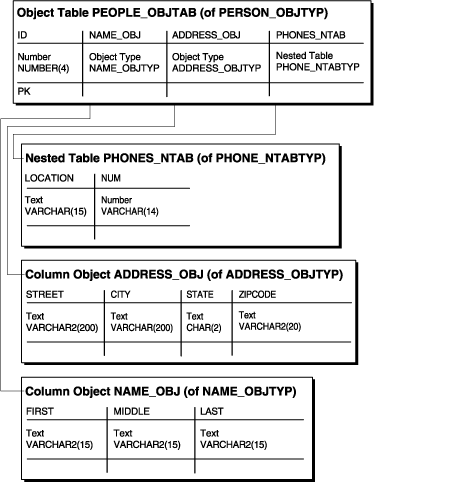 Description of "Figure 9-3 Object-Relational Representation of the people_objtab Object Table"