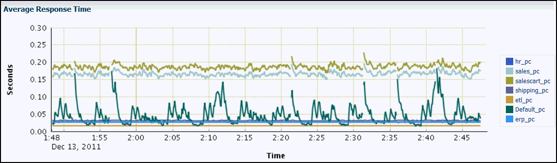It is not convenient or efficient to require constant manual monitoring of the Quality of Service Management Dashboard. Instead you can use the Enterprise Manager Cloud Control notification system for reporting negative Performance Satisfaction Metrics (PSMs) that persist for user-specified times. - Viewing the Resource Wait Times Breakdown