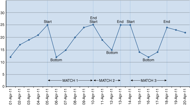 As a simple case of pattern matching, consider the stock price chart illustrated in Figure 21-1.