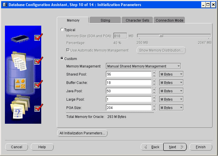 Figure 10-1 illustrates how the Database Configuration Assistant enables you to modify these values in the Memory section.