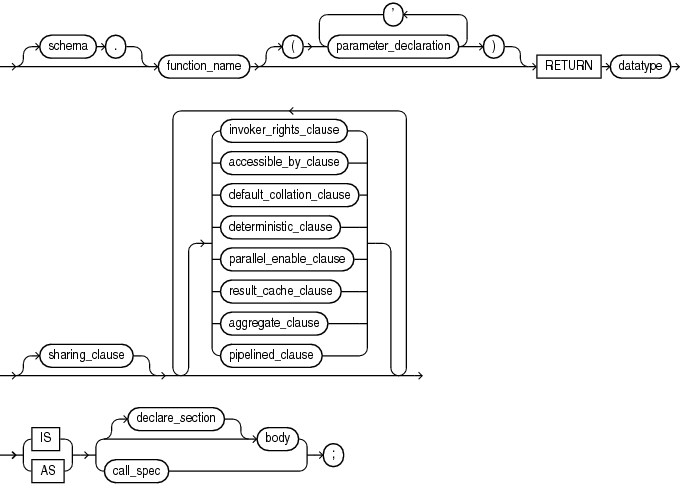 ( sharing_clause ::= , invoker_rights_clause ::= , accessible_by_clause ::= , default_collation_clause ::= , deterministic_clause ::= , parallel_enable_clause ::= , result_cache_clause ::= , aggregate_clause ::= , pipelined_clause ::= , body ::= , call_spec ::= , datatype ::= , declare_section ::= , parameter_declaration ::= )