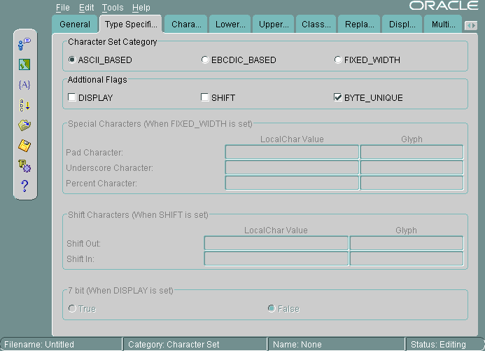 Figure 12-16 General Tab Page for Character Sets