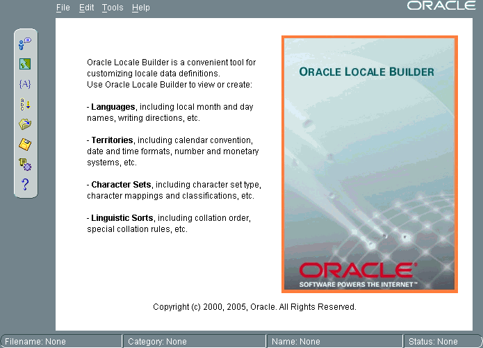 When you start the Oracle Locale Builder, the following screen appears.