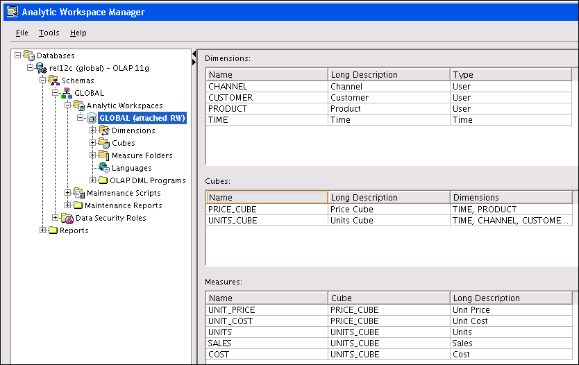 Analytic Workspace Manager is the primary tool for creating, developing, and managing dimensional objects in Oracle Database. Your goal in using Analytic Workspace Manager is to create a dimensional data store that supports business analysis. This data store can stand alone or store summary data as part of a relational data warehouse.