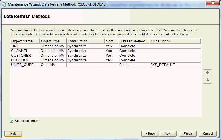 To load and aggregate a cube or a dimension, add it as a step. For more control over the maintenance of a particular cube or dimension, either create a cube script or enter the individual steps directly into the maintenance script: