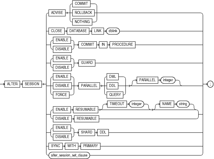 Use the alter_session_set_clause to set initialization parameter values or to set an edition for the current session.