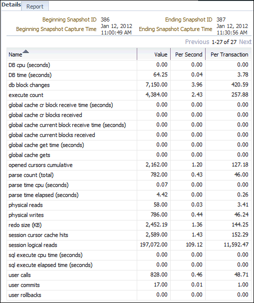 The following screenshot of a Details subpage shows statistics gathered from the previous snapshot (snapshot 386) to the selected snapshot (snapshot 387).