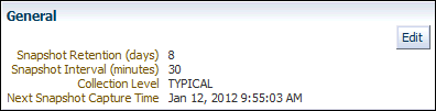 Oracle recommends that you adjust the AWR retention period to at least one month. You can also extend the period to one business cycle so you can compare data across time frames such as the close of the fiscal quarter. You can also create AWR baselines to retain snapshots indefinitely for important time periods.