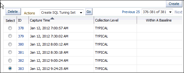 To view the statistics gathered in a snapshot, click the ID link of the snapshot you want to view.